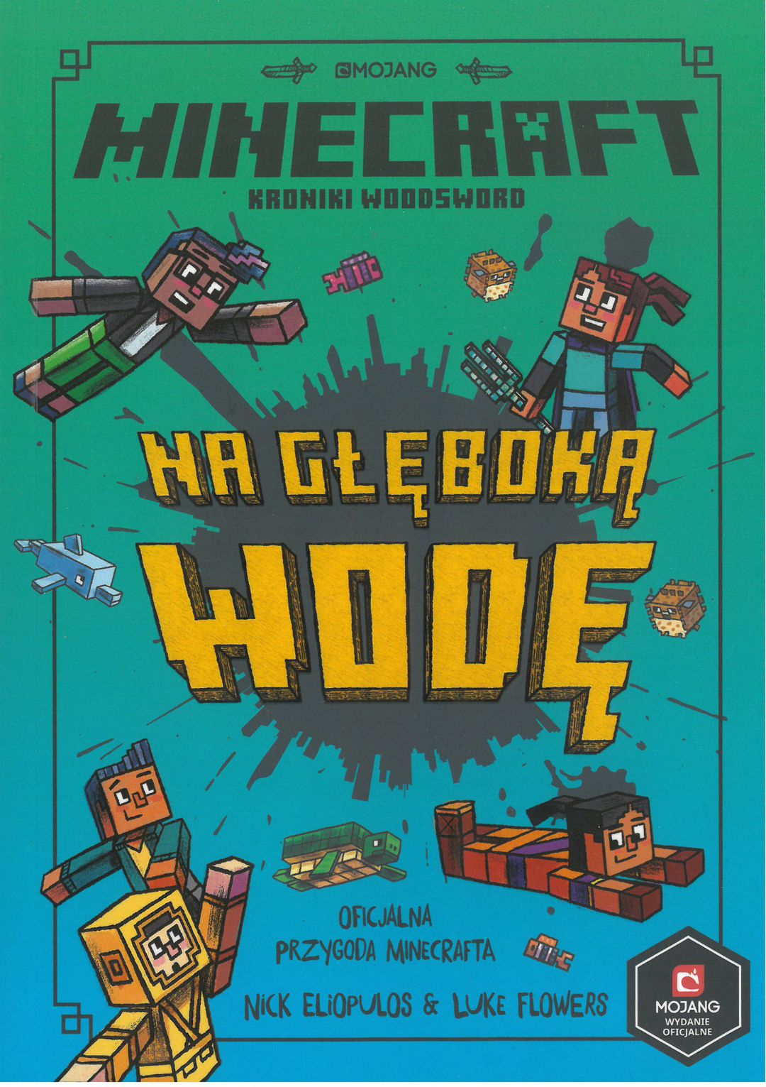 Wciągająca powieść dla wszystkich miłośników Minecrafta! Dzięki specjalnym goglom piątka szkolnych przyjaciół przenosi się do wirtualnego świata swojej ulubionej gry. Bohaterowie nie przypuszczają nawet, jak wiele tajemnic skrywa przed nimi Minecraft. Podczas tej niezwykłej wyprawy natrafiają na porzucony na plaży wrak statku i ukrytą w nim tajemniczą mapę skarbów. Niestety droga do skarbu prowadzi przez ocean - biom, którego jeszcze nie poznali. Skarb jednak kusi, dlatego przyjaciele podejmują wyzwanie i ruszają w pełną przygód i niebezpieczną podróż. „Minecraft. Na głęboką wodę” to trzecia z powieści, których akcja rozgrywa się w świecie bestsellerowej gry. Wciągająca, pełna zwrotów akcji opowieść zachęci dzieci do czytania i pozwoli im zanurzyć się w ulubionym uniwersum. Książka przeznaczona dla dzieci od ósmego roku życia. „Minecraft. Na głęboką wodę” to: ? żywy, zrozumiały język dostosowany do wieku dzieci; ? wartka akcja umieszczona w znanym czytelnikom uniwersum; ? sympatyczni bohaterowie, z którymi łatwo się utożsamić; ? doskonały sposób na rozbudzenie miłości do czytania w miłośnikach gry Minecraft!
