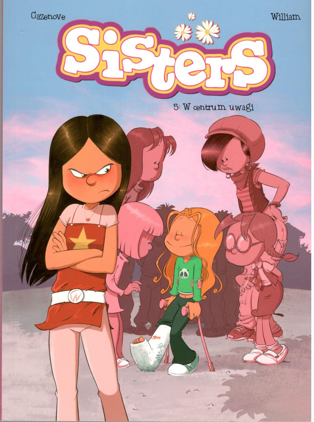 Piąty tom humorystycznej serii familijnej o perypetiach dwóch sióstr: nastoletniej Wendy i o kilka lat młodszej Marine. Nie ma to jak zrobić siostrze głupi dowcip! Co tam, że nabije sobie guza i się wścieknie. Zaraz złość jej przejdzie, a jutro to ona odwdzięczy się kawałem. Tak właśnie wygląda życie dwóch sióstr, które każdego dnia wymyślają coś szalonego. Gorzej, jeśli zabawa kończy się założeniem gipsu, ale nawet z nogą wyglądającą jak pożyczona od mumii można robić niesamowite sztuczki – czy to w domu, czy w szkole, czy na ulicy. W dodatku człowiek znajduje się w centrum uwagi i wszyscy chcą mu pomagać. Jednostronicowe historie o dwóch siostrach są tworzone przez scenarzystę Christophe’a Cazenove’a (autora tekstów do niemal 40 serii humorystycznych dla dzieci i dorosłych) oraz scenarzystę i rysownika Williama Maury’ego, który oprócz Sisters zajmuje się kolorowaniem plansz do kilku innych cykli.